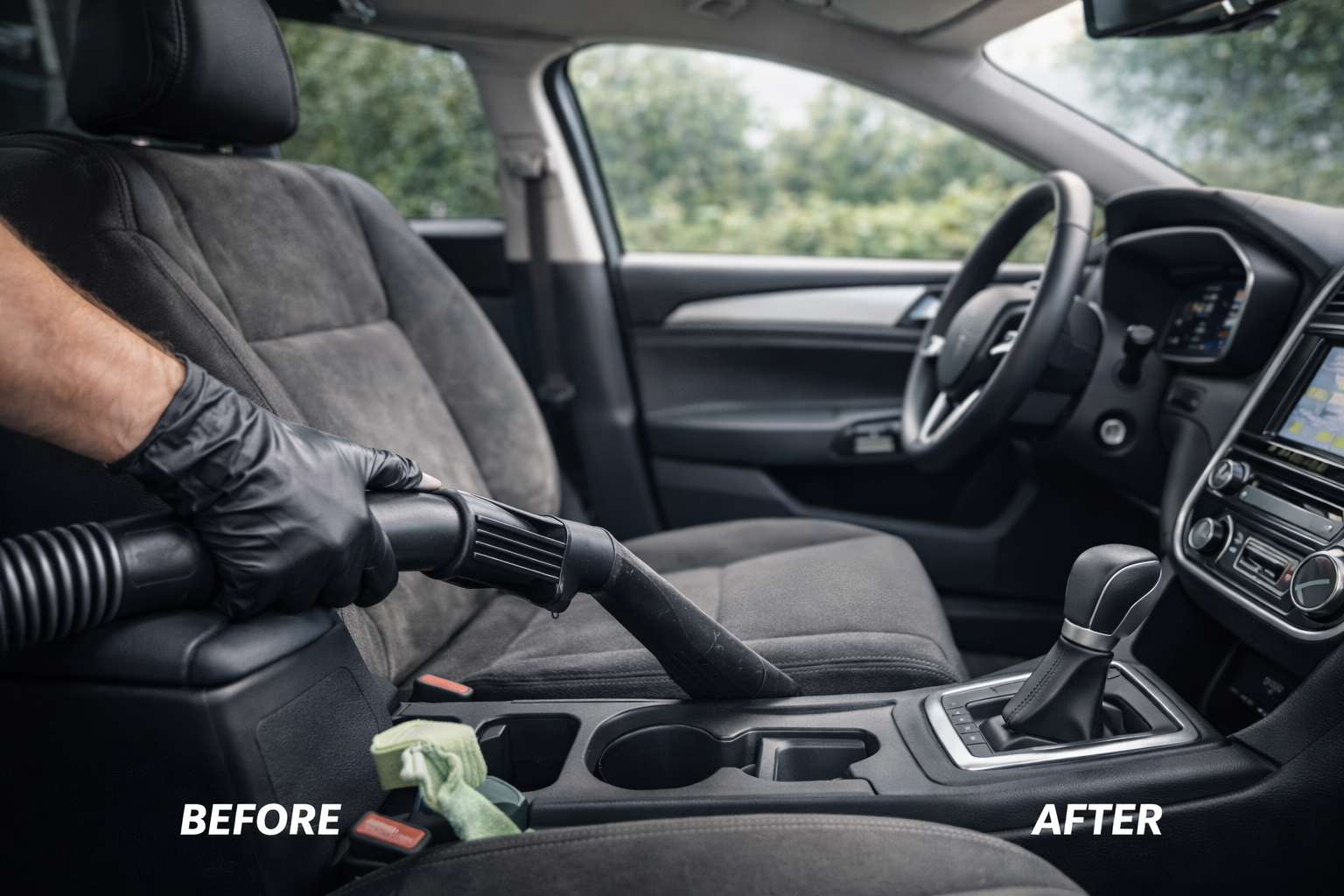 Express car detailing interior is designed to deliver visible results in less time. A clean, modern, and highly functional space equipped with professional-grade materials and precision lighting that highlights every detail of your vehicle.